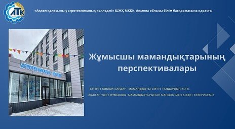 10 қазан күні Ақкөл мемлекеттік ауылшаруашылық колледжінде «Жұмысшы мамандығының тұсаукесері» атты жастардың жұмыс форумы көгілдір жұмыс орындарының беделін көтеруге бағытталған.